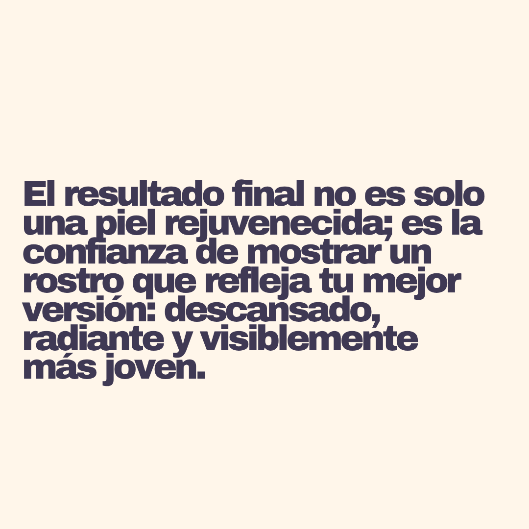 El resultado final no es solo una piel rejuvenecida; es la confianza de mostrar un rostro que refleja tu mejor versión: descansada, radiante y visiblemente más joven.